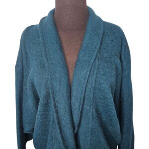 Vintage EXPRESS Angora Blend Cardigan Sweater. Women's Large. Teal Green. Preppy Academia. Crossover front with 2 button bottom closure. Chest approximately 24 inches pit to pit. Length approximately 22 inches.