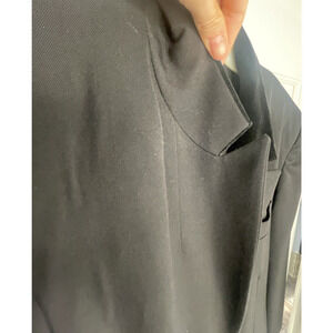 The jacket has shoulder pads with front flap pockets that are functional and a chest pocket.