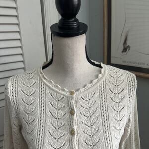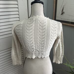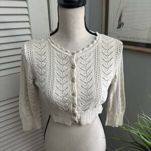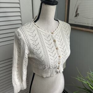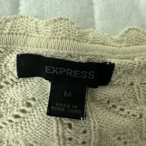 Vintage EXPRESS Sweater Medium Cream Cropped Pointelle Cardigan Retro Y2K Preppy