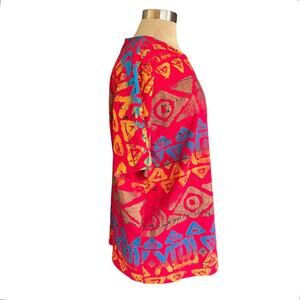 Vintage EZL Red Painted Tribal Design Tee ONE SIZE Casual Short Sleeves Casual. Tagged as one size but most likely SMALL to XL. See measurements below. In excellent condition.
