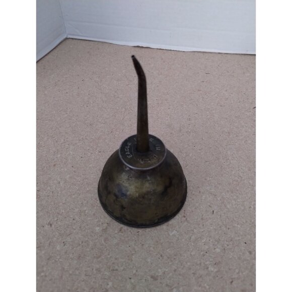 This vintage Eagle brass oil can is a collectible piece for enthusiasts and collectors. Its long spout facilitates easy and precise oil application. The durable brass construction ensures longevity, making it suitable for both functional and decorative purposes.
