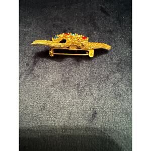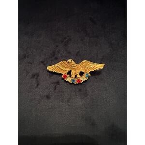Vintage Eagle Gold Tone Pin Brooch Red White Blue Rhinestones Patriotic