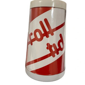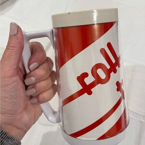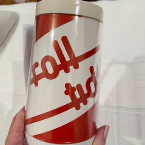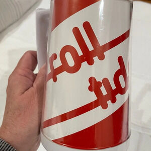 Show your love for the Alabama Crimson Tide with this vintage eagle roll tide thermal mug. The mug is designed to keep your drinks cold while you cheer for your favorite team. The red and white striped color of the mug perfectly matches the team's colors and the Alabama Crimson Tide team logo is prominently displayed on the mug. This mug is a rare find and is still in excellent shape. Perfect for any fan of the Alabama Crimson Tide, this mug is a must-have for any collector.