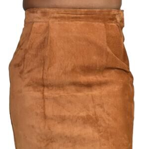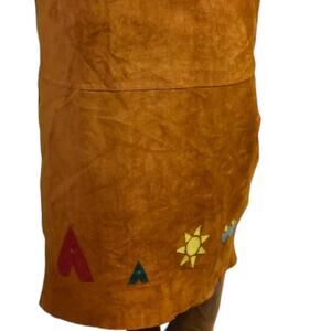 Vintage Eagles Eye Suede Skirt Brown Embroidered Straight Column Camel Size 2 XS