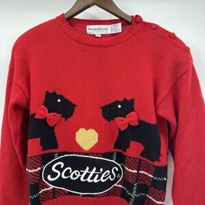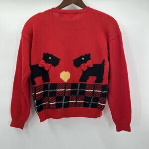 Vintage Eagles Eye Womens Small Red Black Westie Terrier Scottie Dog 1992 Knit