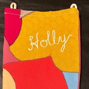 Vintage Early 1970's Handmade Patchwork Christmas Stocking. All the '70's polyester patchwork glory!!