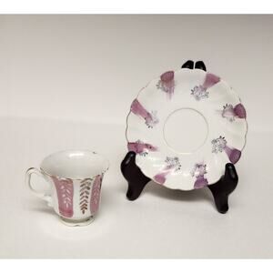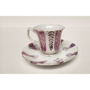 Vintage Early 19th Century White, Purple Gold Trim Teacups and Saucers