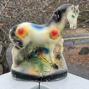 Vintage Early 20th C. Carnival Chalkware Prize Horse Glitter Painted Sculpture
