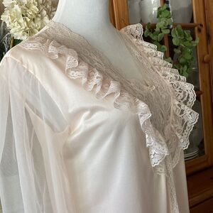 Vintage Early 80’s Undercover Wear Peach/Cream Lace Lingerie Set Size Small