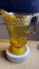 The vintage early American pattern brown glass pitcher by Adams & Co. is a stunning piece of mid-century modern décor. Made in the United States during the 1930s, this glossy finished pitcher stands at 9" tall with a classic American theme. Perfect for hand washing, this pitcher features elegant handles and is part of the Early American Prescut/EAPC product line, adding a touch of nostalgia to any home collection. Ideal for displaying on a table or kitchen countertop, this pitcher is a timeless piece that exudes a sense of history and charm.