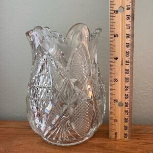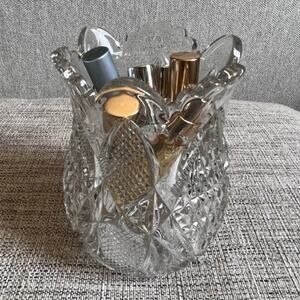 Stunning vase in the sunlight or be candle light. Perfect for bathroom counter tops. No chips or cracks. Excellent condition.