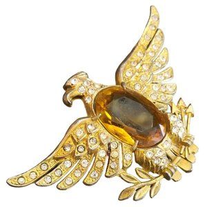 Vintage Early Glass & Rhinestone Eagle Brooch (A2711)