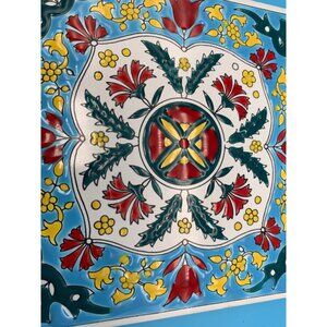 Vintage, Early, H&R Johnson, Greece, Philkeram Johnson 6" Tile Blue Red Tulips