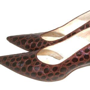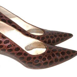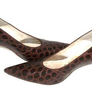 Vintage Early Sixties Pointy Brown Genuine Crocodile Pumps