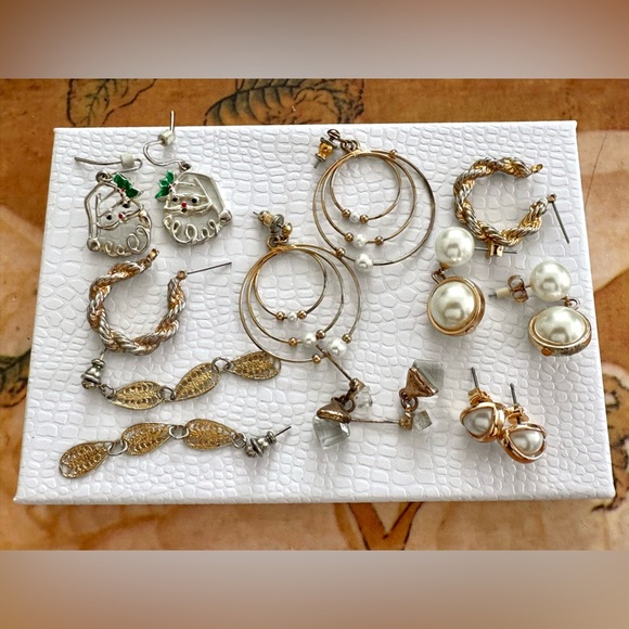 Vintage Earring Lot – Mixed Gold, Pearl & Holiday Styles