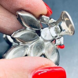 Vintage Earrings 1950s Blue Aurora Borealis Silver Tone Large Cluster Clip on