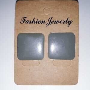 Vintage Earrings 1980's Taupe Gray Square