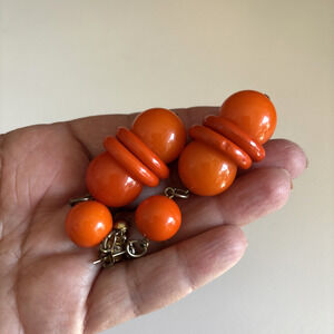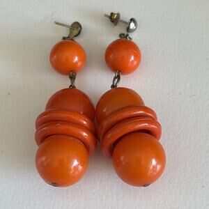 Vintage Earrings 3" Dangle Drop Pierced Orange Acrylic Mod Happy Go go