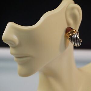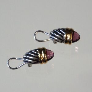 Vintage Earrings Amethyst Mixed Metal Designer Signed M Cable Classics Shrimp