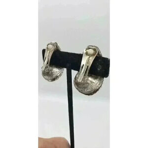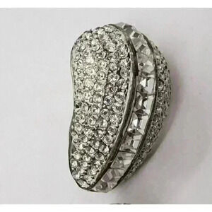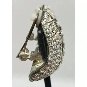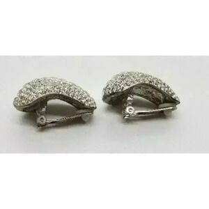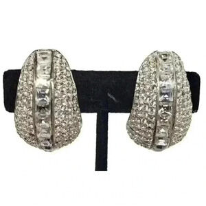 Fantastic pair of vintage clipearrings that delivrr maximum bling. These borrow from a Givenchy shaped similar rarring for dramatic style. Covered in pave set rhinestones with square cut stones down the center. Not for the Meek, as you will be noticed when you wear these.
