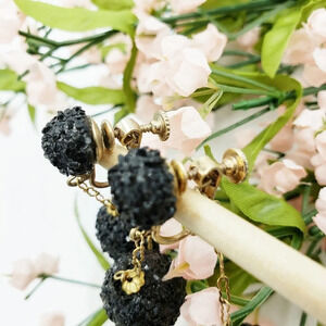 Vintage Earrings • Black Ball Sparkler • Screwbacks • 1960s