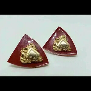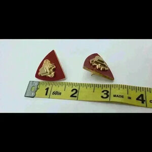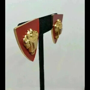 Vintage Earrings Deep Red Enamel & Raised Gold Shield Pierced GOT Celtic Crest. unsigned, great condition.