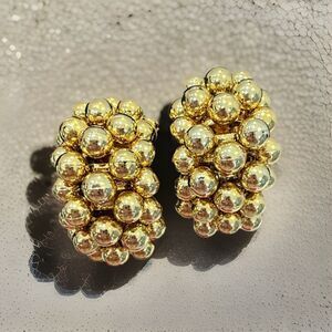 Vintage Earrings Clip On Faux Pearl Gold Ball Cluster Gorgeous 1970-1980