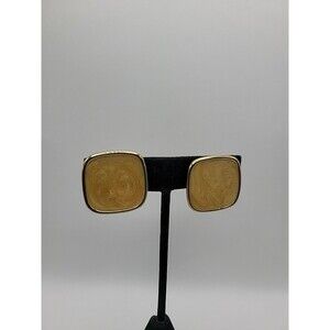 Vintage Earrings Clip On Gold Tone Enamel Gold Tone Jewelry Costume