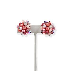 Vintage Earrings Clip On Round Cluster Pink White AB Beads Silver Tone Japan