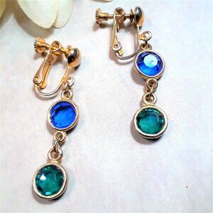 Timeless vintage earrings featuring a goldtone screw back design with banded faceted crystals. Perfect for adding a touch of elegance to any outfit or occasion.