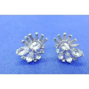 Vintage Earrings Kramer NY Rhinestone Spikey Statement Big Signed Screw back