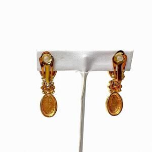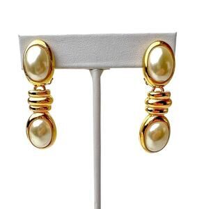 Vintage Earrings Lot 3 Faux Pearl Dangle Rhinestone Clip On Flower Gold Tone