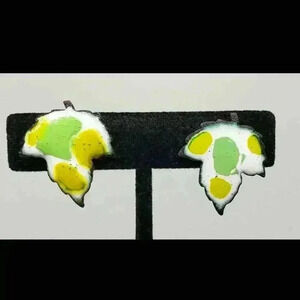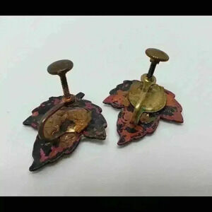 Vintage Earrings MCM Enamel On Copper Leaf MID CENTURY Screw Back Amazing