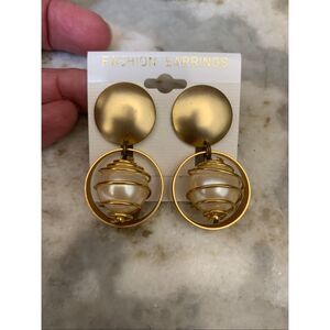 Back to the 80’s Spiral Caged Faux Pearl Earrings with Matte Gold Tone. Approximately 2” - Post Backs