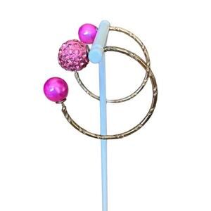 Vintage Earrings Open Hoop with Pink Glitter Ball