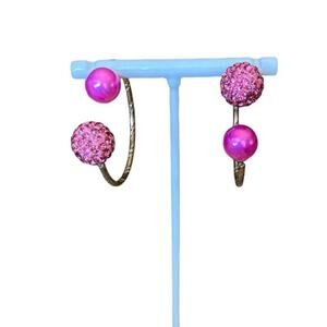 Features: Fun statement earrings. Vintage costume jewelry with an 80's feel. Gold hoops with hot pink and pink glitter ball backs. These will definitely be noticed!