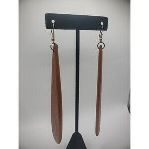 Vintage Earrings Pierced Hook Drop Dangle Wooden Teardrop Jewelry Costume