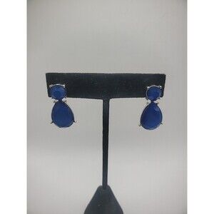 Vintage Earrings Pierced Post Stud Blue Drop Faceted Jewelry Costume