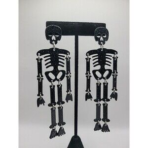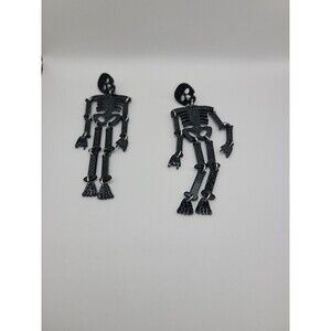 These vintage earrings feature a unique skeleton shape design, perfect for adding a spooky touch to your Halloween jewelry collection. The stud style with a butterfly closure makes them easy to wear, while the black color and plastic material give them a lightweight feel. These earrings would make a great gift for any occasion, from birthdays to weddings, with their vintage appeal and Halloween theme. Ideal for those who appreciate artisanal and unconventional jewelry pieces.