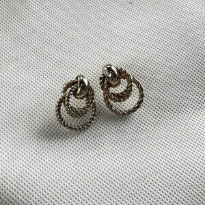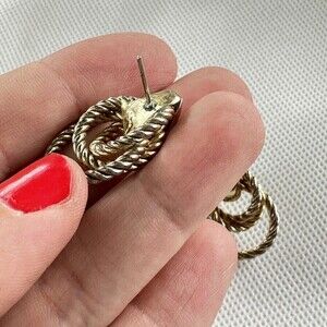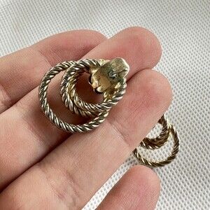 Vintage Earrings Pierced Twist Knot Gold Tone Metal Rope Door Knocker Unsigned