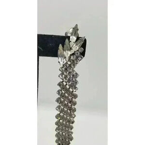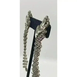 Vintage Earrings Rhinestone Super Long Dangle Clip Wedding Drama Deco Retro