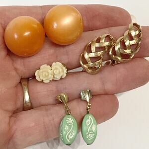 Vintage Earrings Set Lot 4 Pairs Drop Stud and Clip Cottagecore Dainty Retro