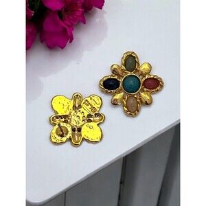 These fantastic vintage Liz Claiborne pierced earrings are gold tone and feature simulated gemstones.