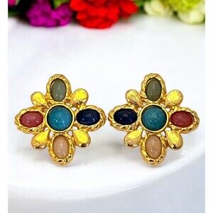 Vintage Earrings Signed Liz Claiborne Gold Tone Simulated Gemstones Pierced 5F