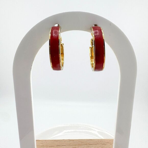 Vintage Earrings Signed Monet Hoops Red Gold Tone Classic Retro Timeless
