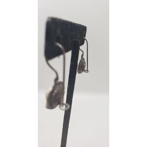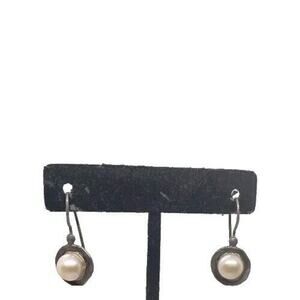 A beautiful pair of vintage earrings done in hand hammered Sterling silver marked 925 and accented with a genuine cultured pearl. You can see some glue around the pearl. The back is stamped 925 Israel. The hooks are very long at Pierce hooks. Beautifully made please see the photos for condition and size