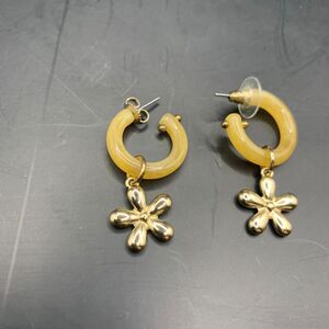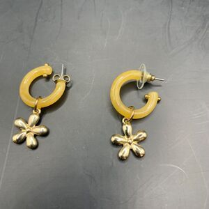 Vintage Earrings Yellow Lucite Gold tone Flower 1.5 inch Hoop Dangle Drop 70s