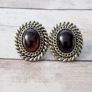 Vintage Earrings for Pierced Ears Dark Brown with Gold Tone Halo