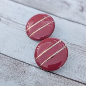 Vintage Earrings for Pierced Ears Red Circle with Gold Tone Stripes 1"