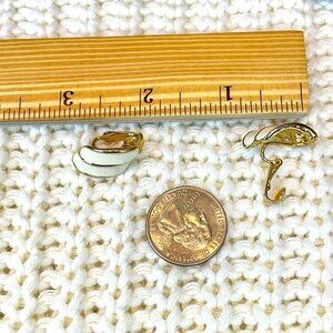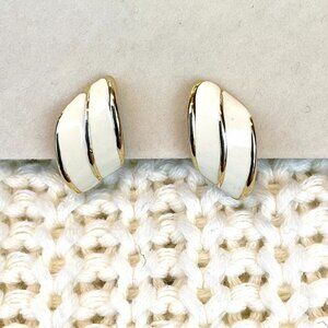 Beautiful 80s or 70s clip on earrings in ivory cream white and gold tone, simplistic and ready for spring summer